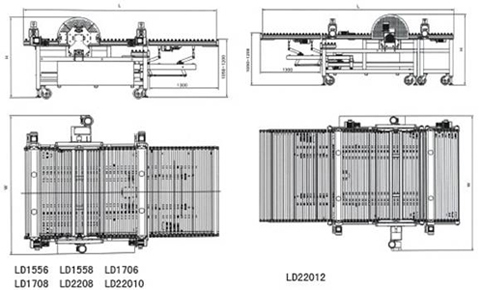 | Modelo | Modelo de la prensa | Anchura máxima de la baldosa (mm) | Espesor máximo de la baldosa (m) | Longitud del elevador telescópico(mm) | Longitud máxima de la baldosa(mm) | Distancia entre los rodillos (mm) | Diámetro de los rodillos (mm) | Velocidad lineal de los rodillos de la plataforma (m/min) | Velocidad lineal de recambio de la plataforma (m/min) | Capacidad de manejo de las baldosas (ciclos/min.) | Estructura y longitude total (mm) | Tamaño (largoXanchoXalto) |